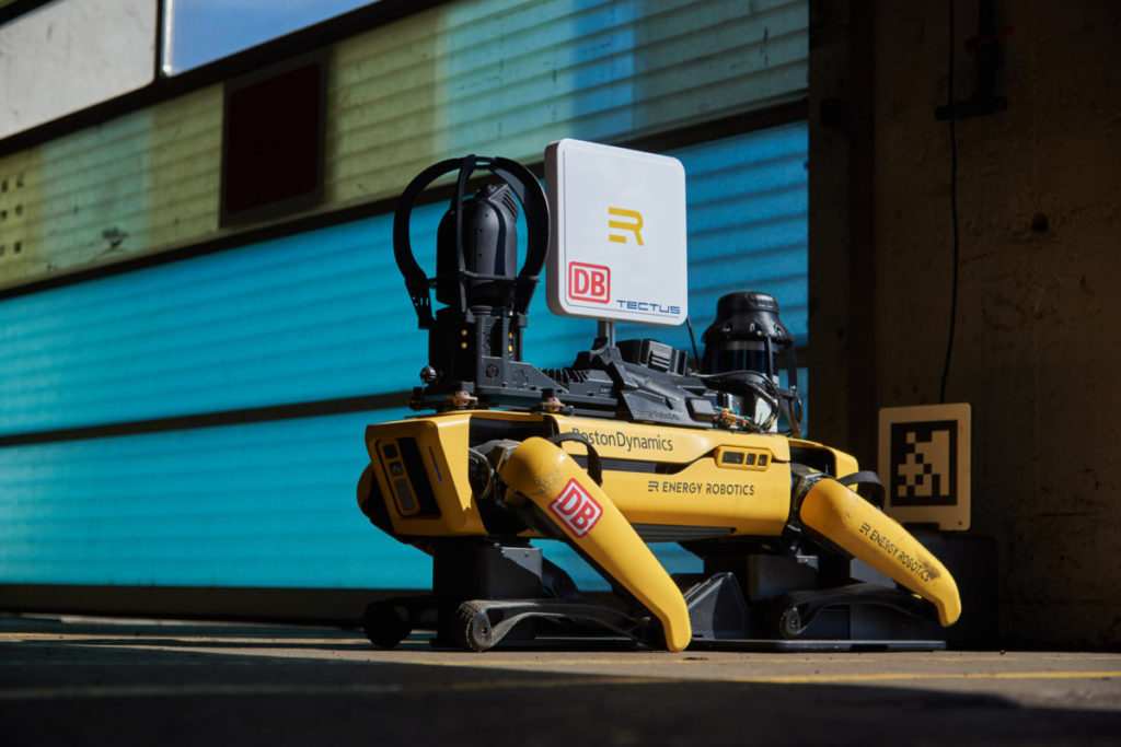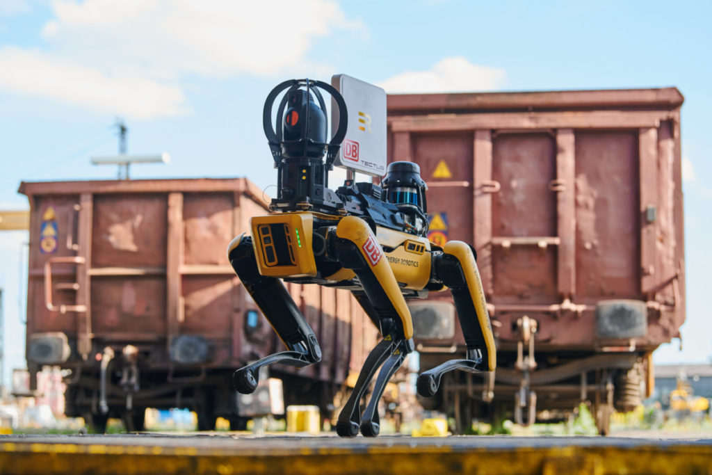 Der Laufroboter Spot von Boston Dynamics wird im Instandhaltungswerk in Mainz-Bischofsheim bei der DB Cargo getestet. Bild: Deutsche Bahn AG & Stefan Wildhirt